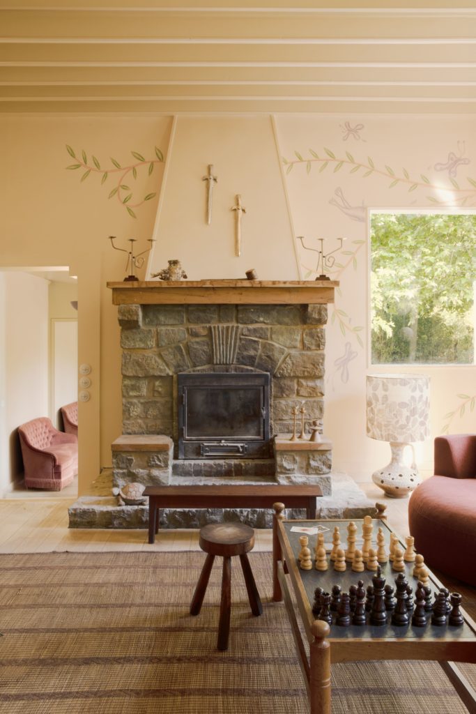 À l’origine du projet, Camille Omerin, entrepreneure au regard artistique affûté, formée dans les grandes Maisons de luxe, a été séduite par le charme de ce domaine entouré d’arbres centenaires, elle en a fait un refuge de quiétude. Sous une majestueuse verrière de style serre Eiffel, le salon s’impose comme le cœur de la maison. Fresques inspirées de la mythologie grecque célébrant le cycle poétique des quatre saisons, lumière naturelle et mobilier délicat invitent à la rêverie. L’esprit du lieu se prolonge dans le spa et la piscine d’hiver, ornés, entre autres, d’œuvres d’Hermentaire et d’Alice Louradour. Le spa, dont l’ouverture est prévue en novembre 2025, proposera hammam, sauna et soins signés de la marque de beauté holistique française Holidermie, pour célébrer l’art du lâcher-prise.